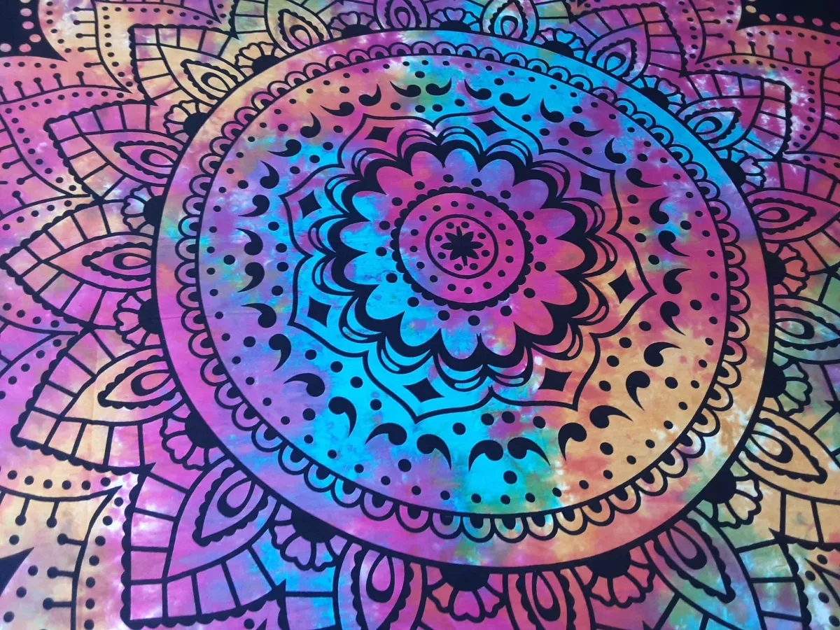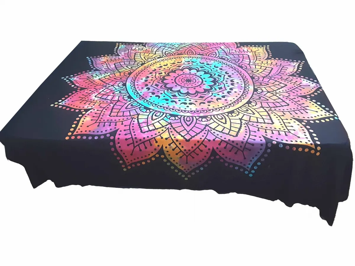 Colcha Yin Yang Multicor em algodão. Medidas: 232cm x 212cm. Pode conter pequenos defeitos de estampa pois é feita à mão. As fronhas dos travesseiros são meramente ilustrativas e não acompanham a colcha.