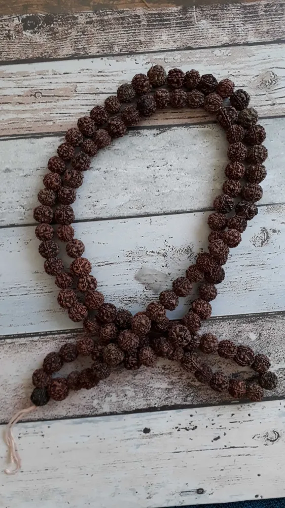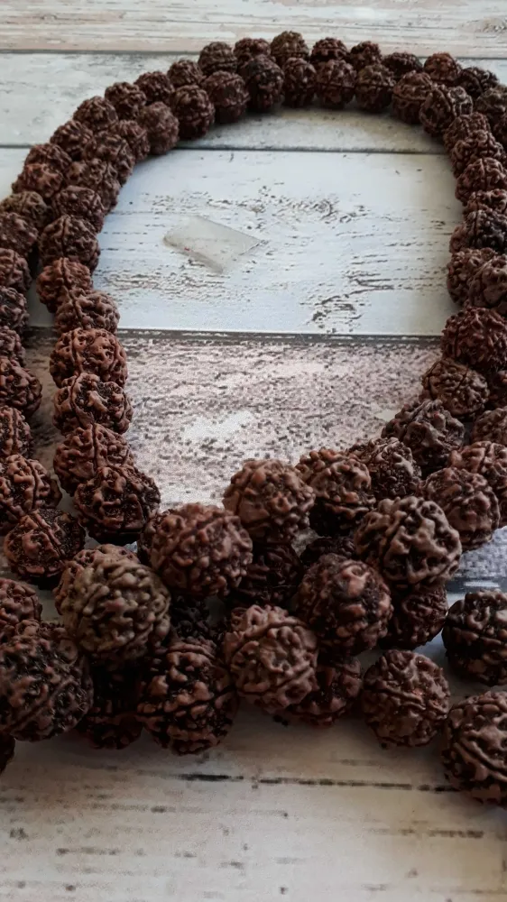 Japamala Indiano Rudraksha, sementes verdadeiras. 108 contas. 86 cm comprimento. Contas em média 2 cm.
