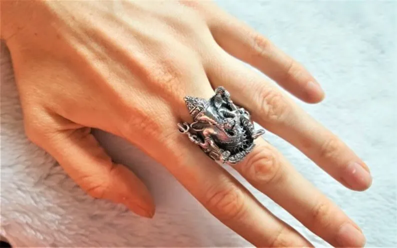 Anel Ganesha minuciosamente trabalhado Tamanhos: 15 / 16 / 18 / 21 Tirupati Ars New Delhi - India