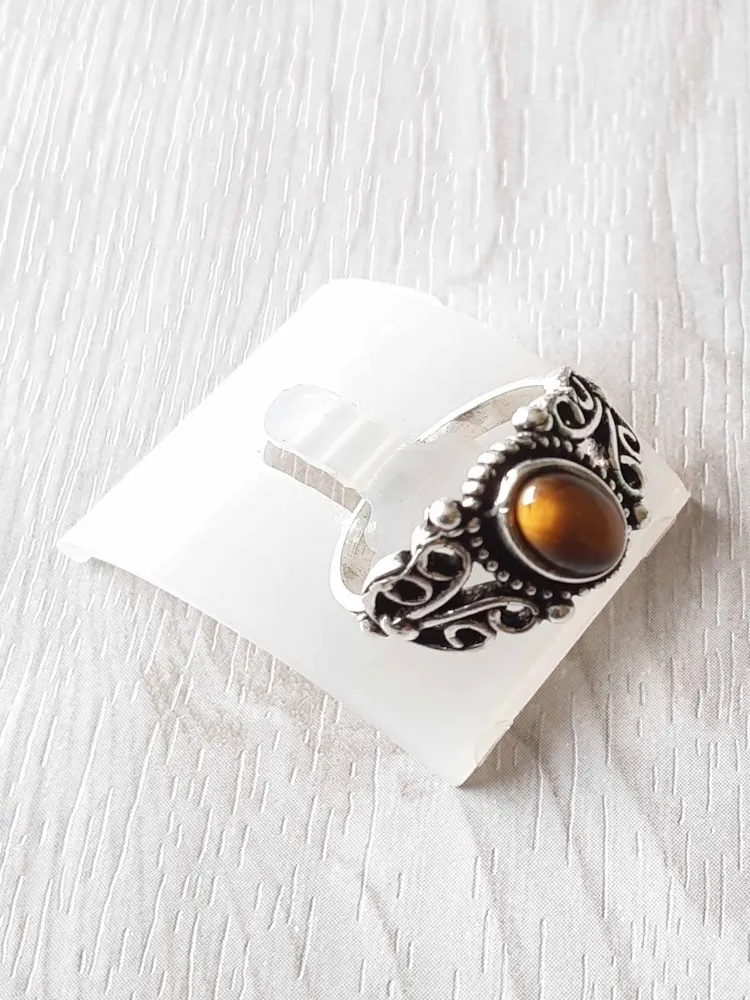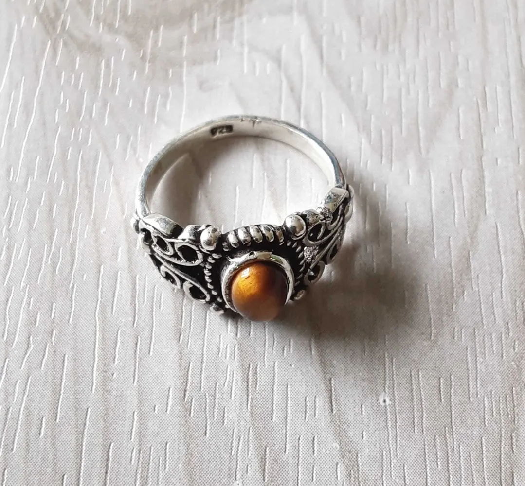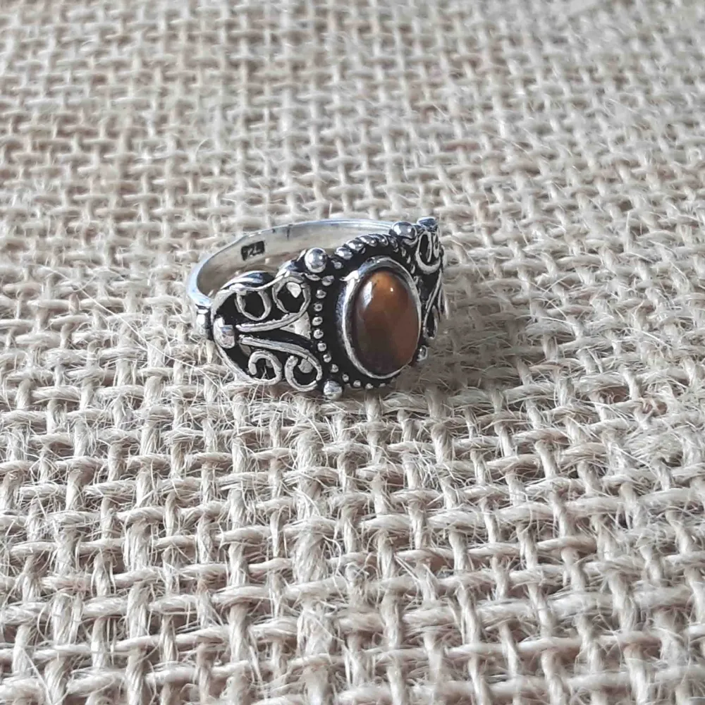 Anel indiano em prata 925 trabalhada. Pedra Olho de Tigre Tamanho 16 Entrega imediata para todo o Brasil