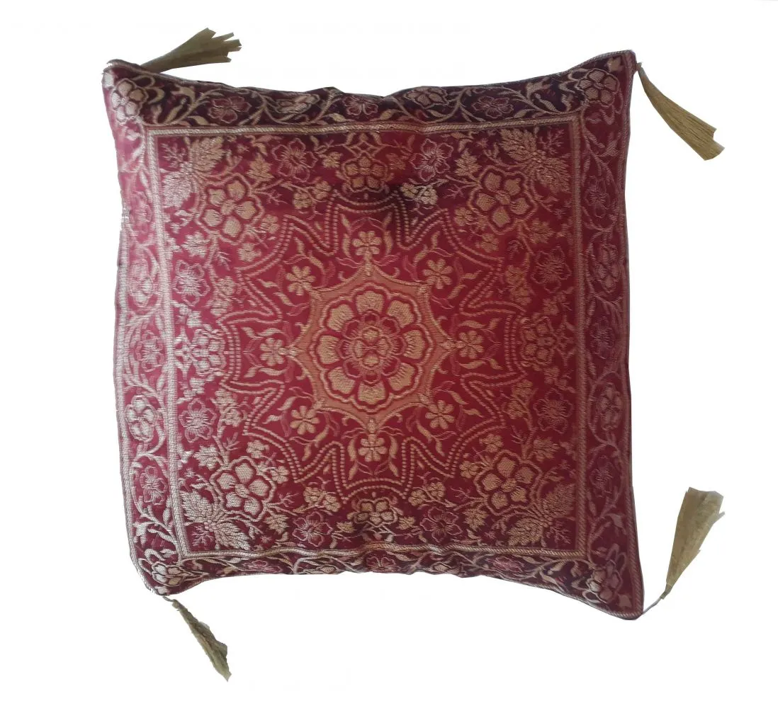 Capa de almofada modelo Mandala. Ricamente bordada com fios de ouro e com muitos detalhes. Tecido levemente acolchoado. Tamanho: 40 x 40cm.