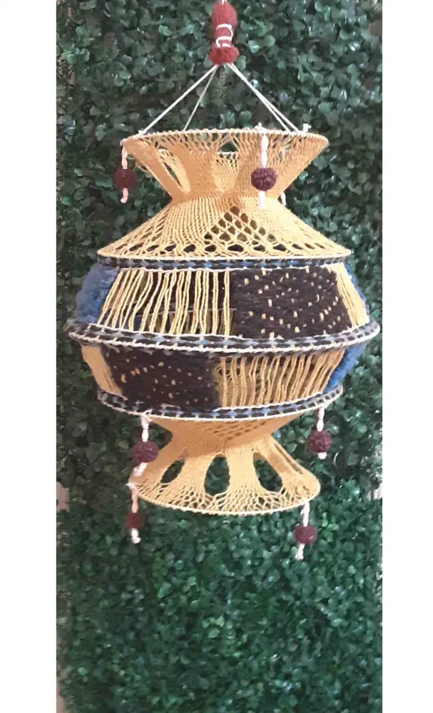 Luminária em Cordas & Rudraksha (semente indiana sagrada). Ideal para cantinhos aconchegantes, locais de meditação e outros à sua escolha! 2 Tamanhos: 27cm x 30cm e 27 x 37cm Não acompanha lâmpada, bocal, fios ou tomada.