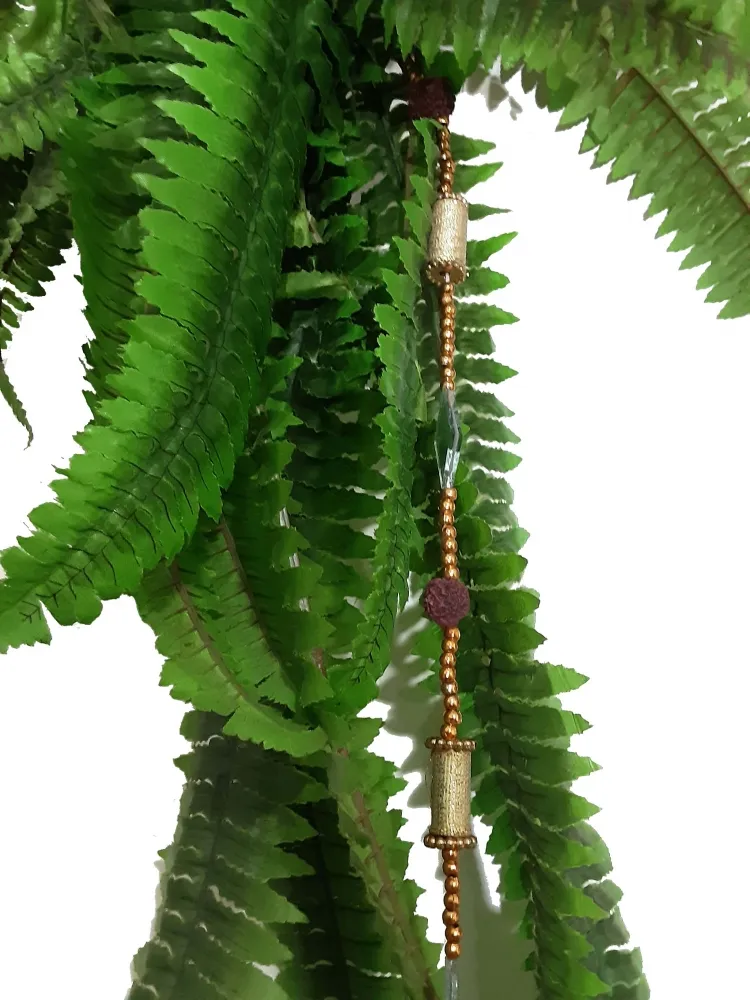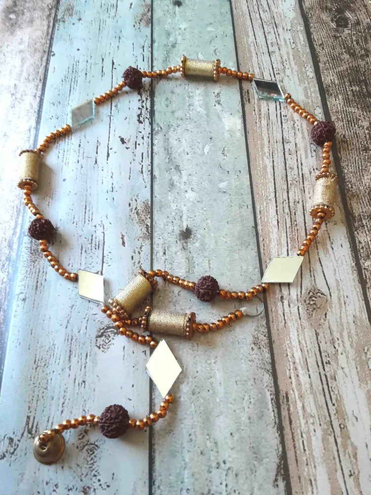 Móbile indiano com Rudraksha, a semente sagrada, e espelhinhos. Comprimento: 100cm