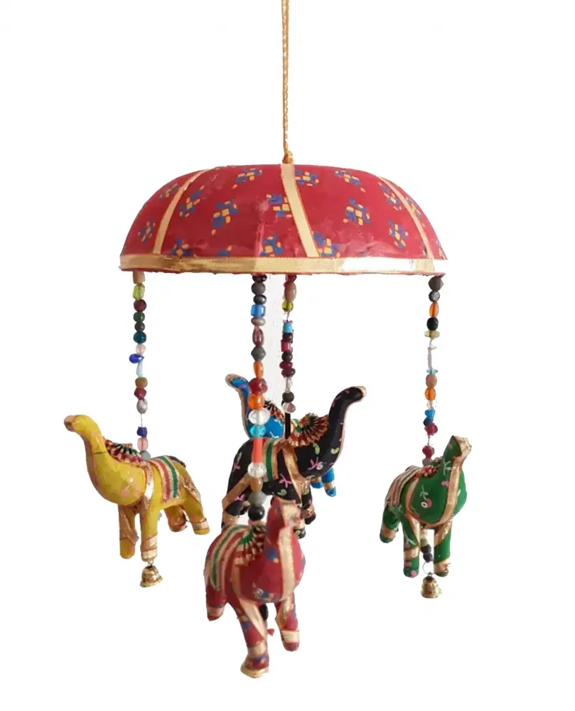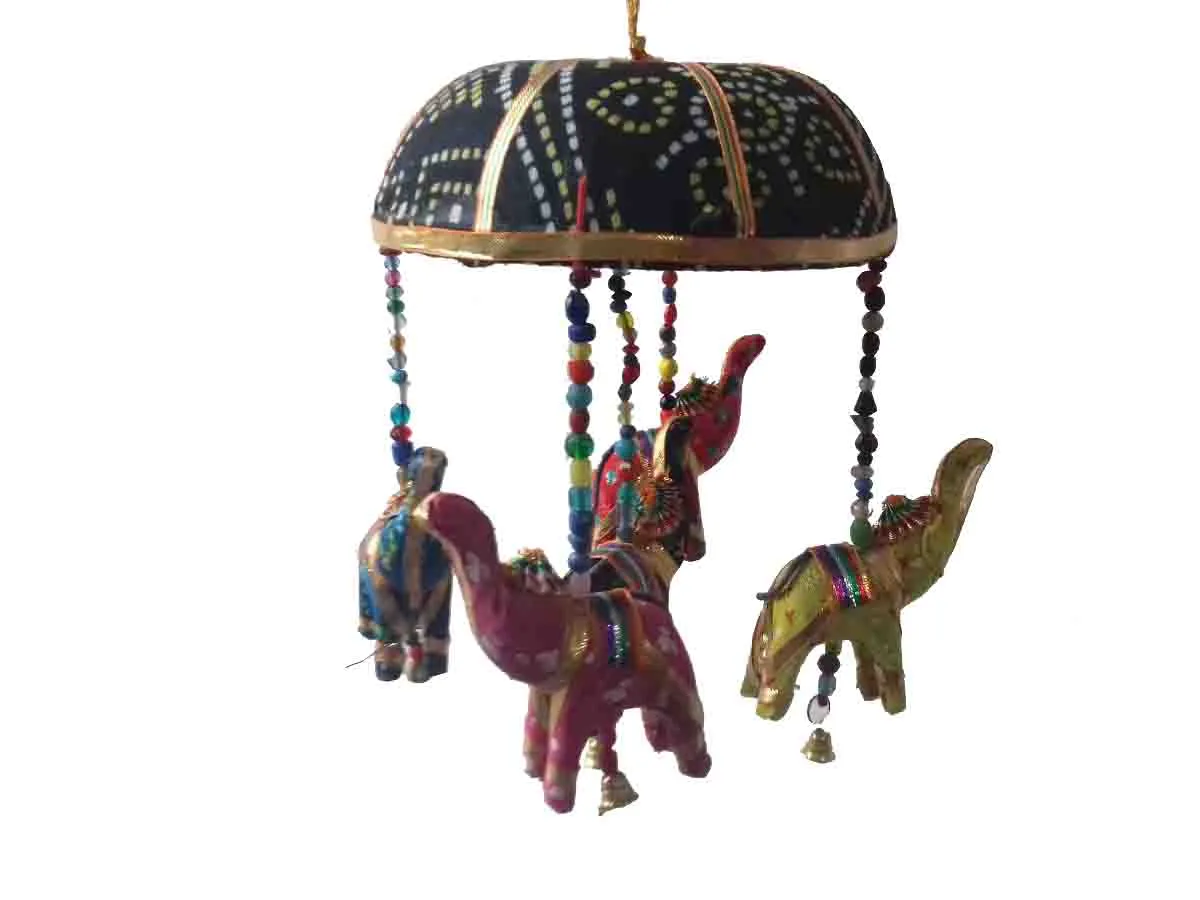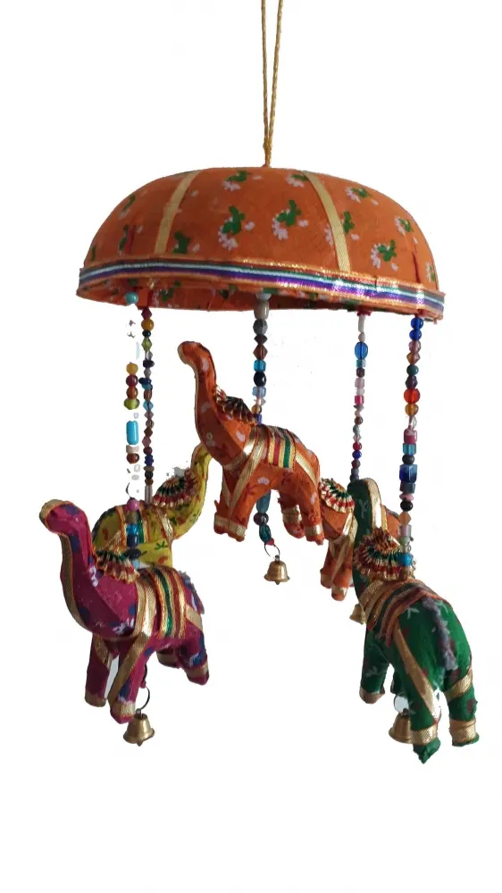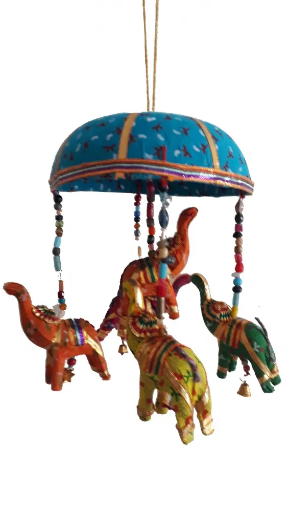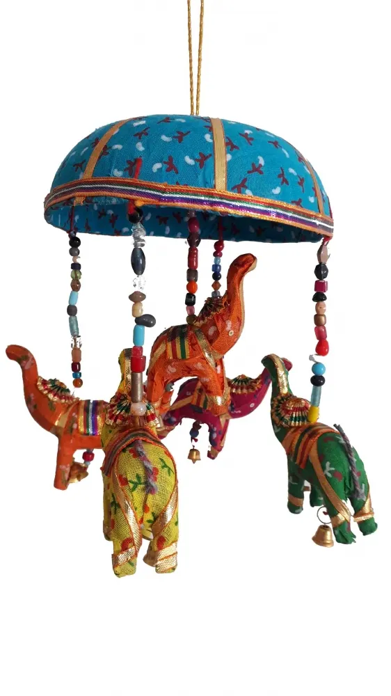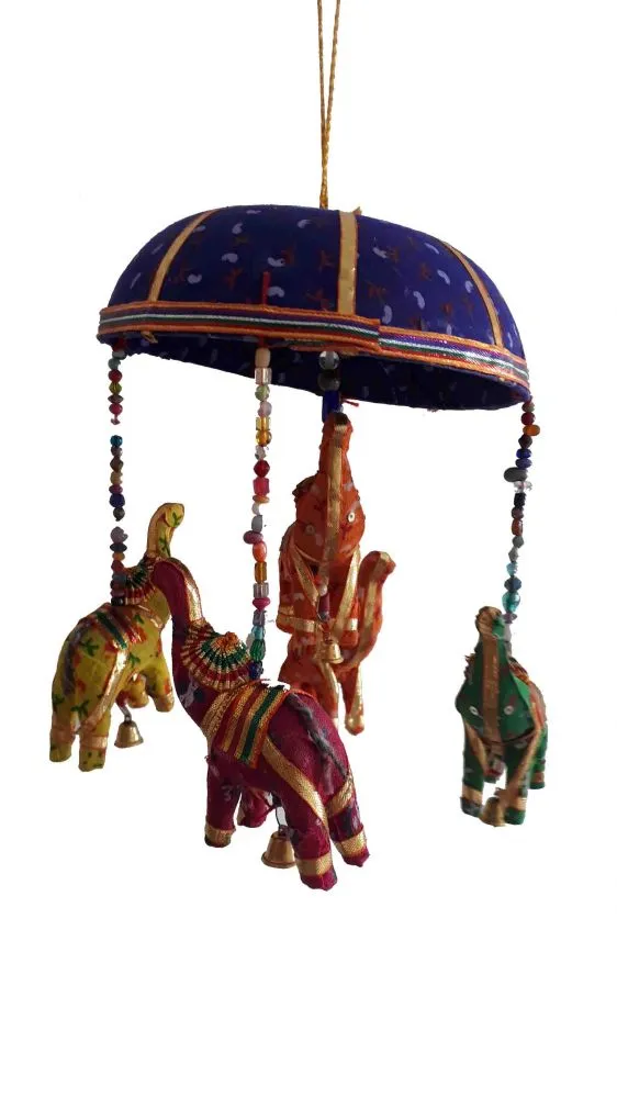 Móbile indiano Elefantinhos. 5 elefantinhos no carrossel compondo uma bela decoração.