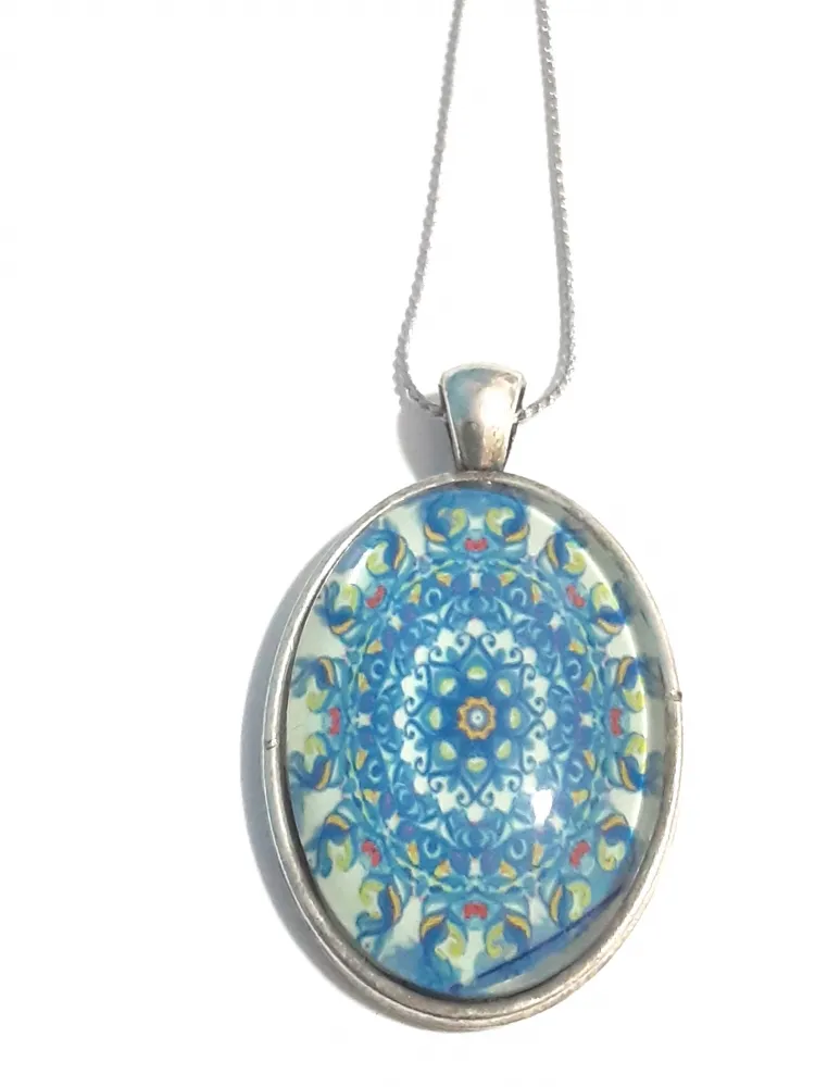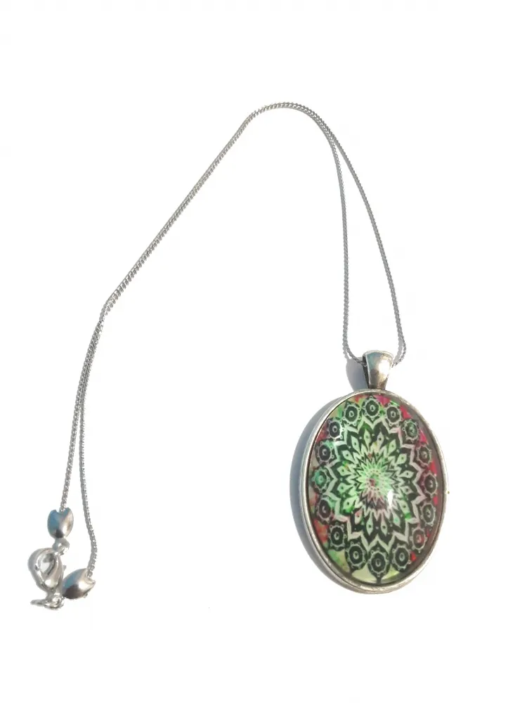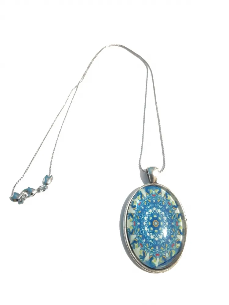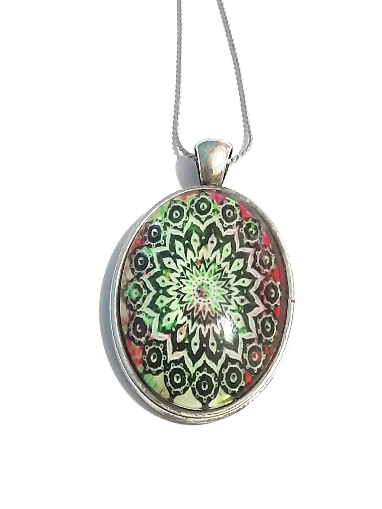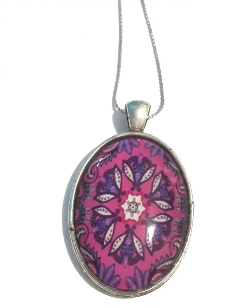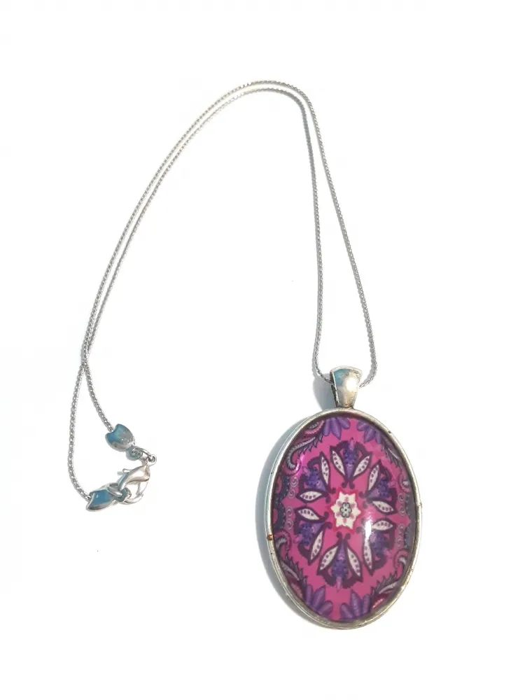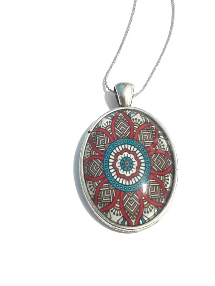 Pingente Mandala. Em metal e resina. Cordão: 22 cm Pingente: 3,5cm x 2,5cm