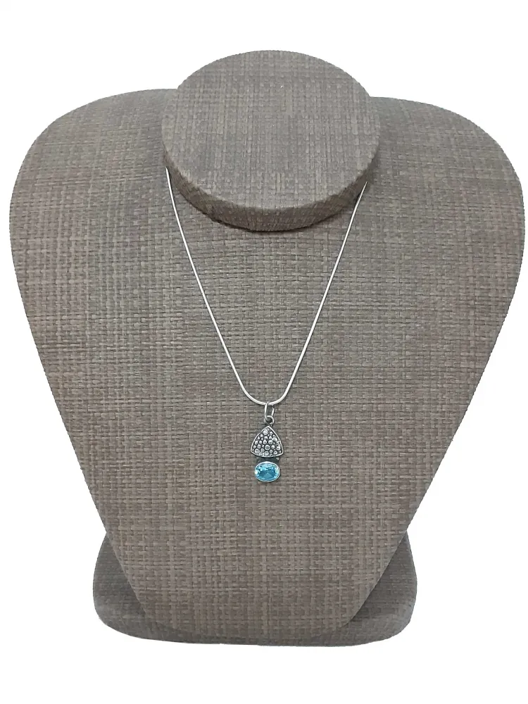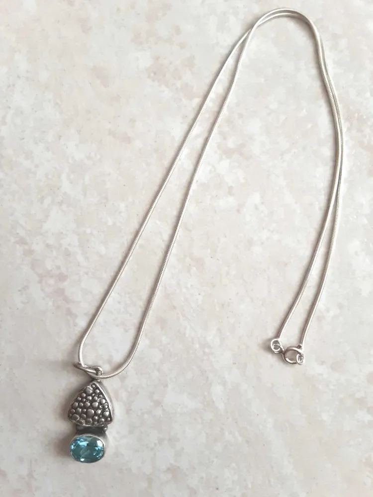 Pingente indiano em prata 925 com Água Marinha. Medida: 2cm. Cordão esticado: 46cm. Entrega imediata para todo o Brasil.