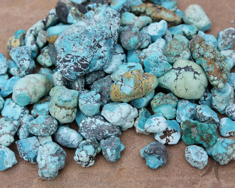 Turquesa é uma gema geralmente entre a cor ciano e o verde, gerando a cor homônima. As variedades mais caras são a "robin's egg blue," (cor azul do céu). As inferiores são esverdeadas. A turquesa que se desvanece na cor é também inferior.