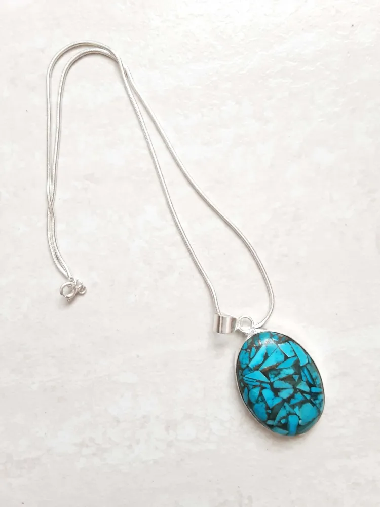 Pingente & Cordão Mexican Turquoise 2 Tamanhos