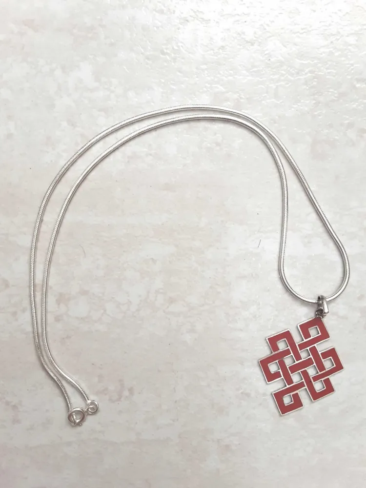 Pingente & Cordão Vajra Tibetano. Coral vermelho. Prata 925. Medidas: 3cm x 2,5cm. Cordão esticado: 46cm. Entrega imediata.