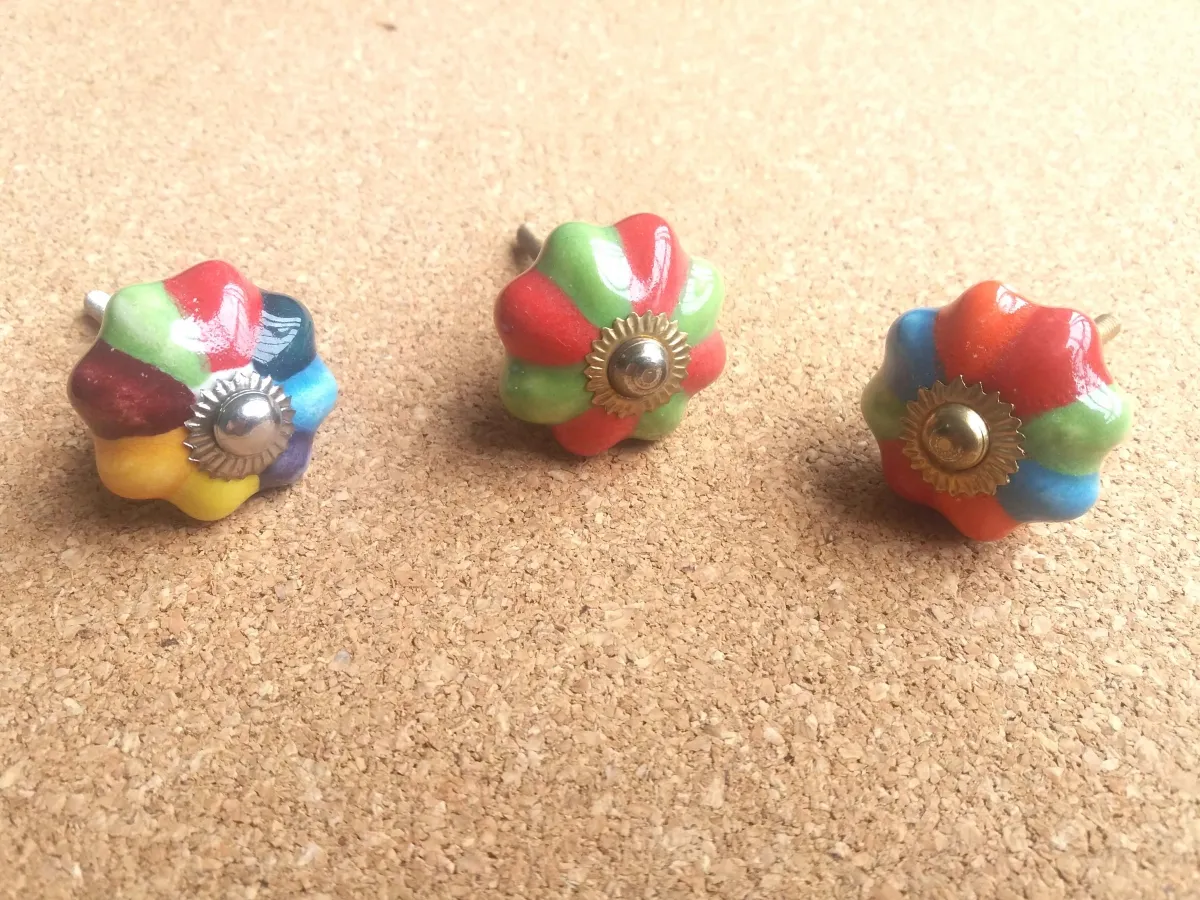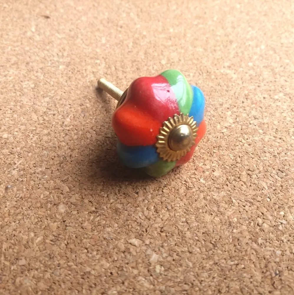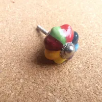 Puxador indiano decorativo, em cerâmica e metal. Diâmetro: 4 cm. 3 modelos Comprimento sem o parafuso: 3 cm. Comprimento total com o parafuso: 6,5 cm. Entrega imediata para todo o Brasil