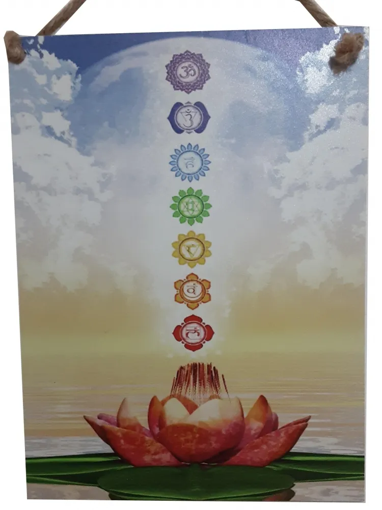 Quadro Decorativo Lótus & Sete Chakras. Medidas: 28cm x 19cm x 0,5cm